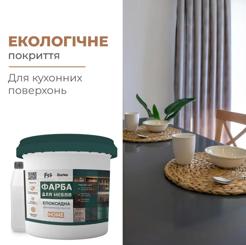 "Фарбувала кухонні фасади й стільці у білий колір. Емаль чудово перекрила темну поверхню, колір рівномірний, без плям. Сохне швидко, після висихання не має запаху. Тепер кухня стала світлішою й охайнішою — ніби після ремонту!"